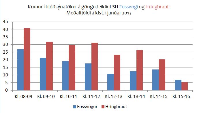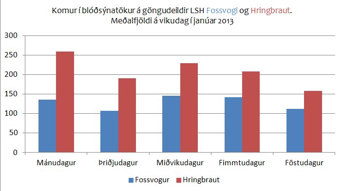 Veljið þann blóðtökustað sem er nær heimili eða vinnu. Myndirnar hér fyrir neðan sýna hvernig annir eru á hvorum stað fyrir sig, Fossvogi og Hringbraut, annars vegna eftir klukkustundum, hins vegar eftir virkum dögum (janúar 2013). Ráðlegt er að velja þann tíma sem annir eru jafnan minni.
