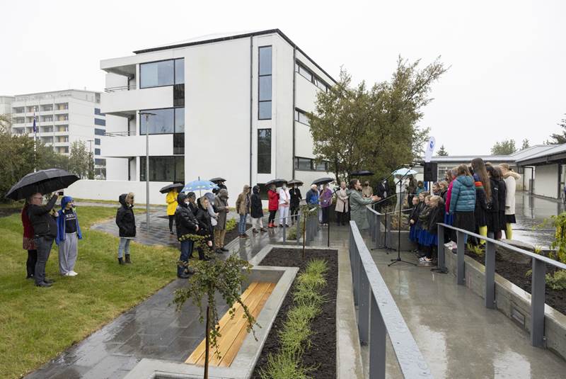 Hollvinasamtök Grensásdeildar afhentu formlega nýjan og endurbættan garð við endurhæfingardeildina að Grensási að viðstöddum heilbrigðisráðherra.