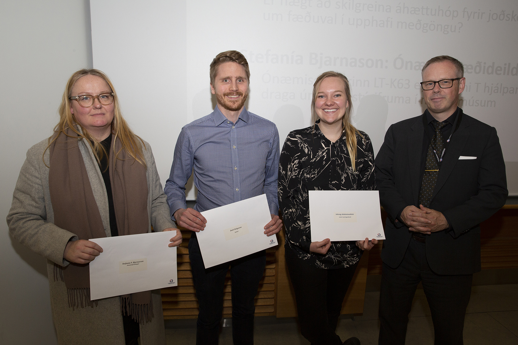 Þrír vísindamenn fengu ferðastyrki vísindaráðs Landspítala fyrir veggspjöld sín á Vísindum á vordögum 2019; Daði Helgason, Stefanía Bjarnason og Sólveig Anna Aðalsteinsdóttir. Hvert þeirra fékk 100 þúsund krónur.