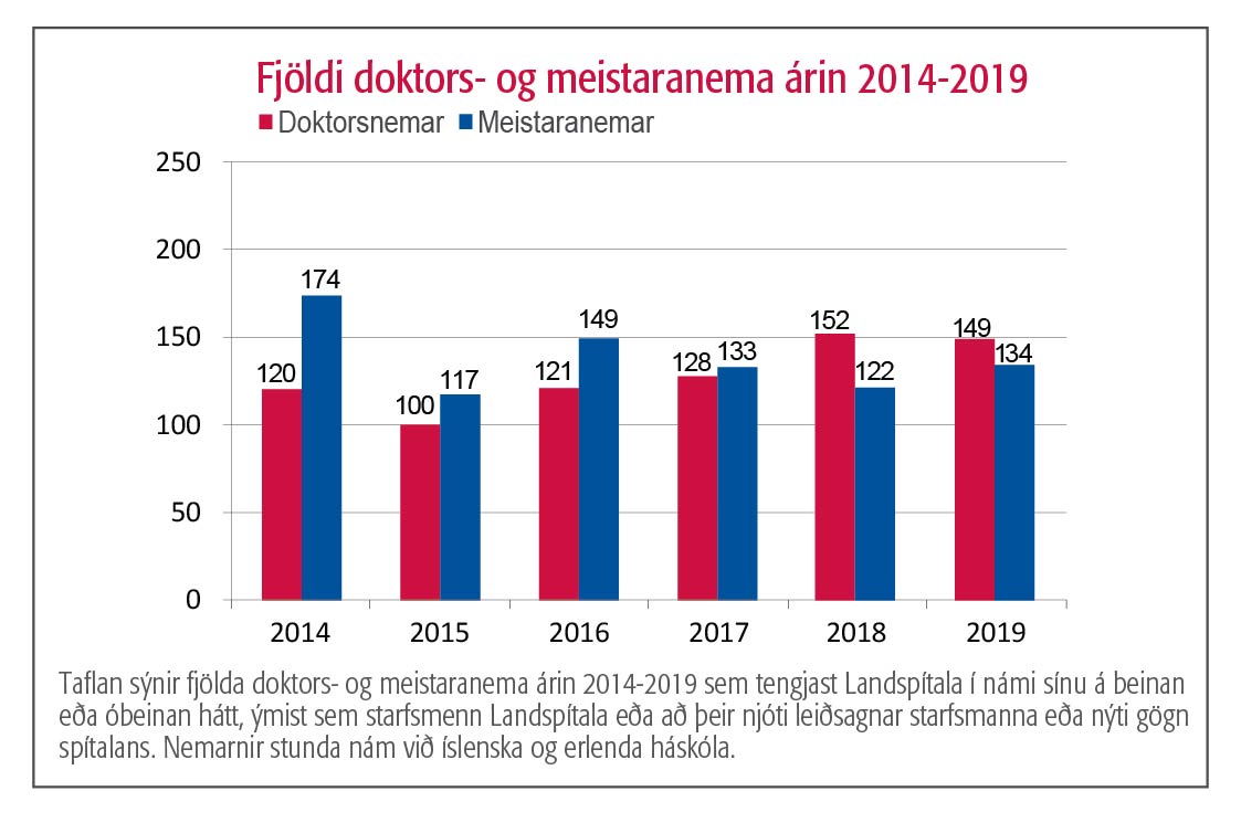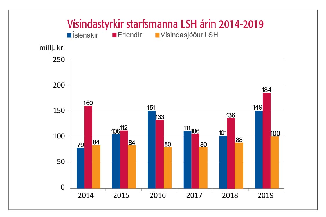 Landspítali er einn stærsti vinnuveitandi fólks með doktorspróf á landinu. Þetta er starfsfólk sem hefur varið mörgum árum af ævi sinni í þjálfun til vísindarannsókna og margir brenna fyrir nýsköpun og rannsóknum. Mikilvægt er að því sé skapaður vettvangur til að halda áfram að vinna að rannsóknum meðfram klínískum störfum eftir að doktorsnámi lýkur. Það er sjúklingum og heilbrigðiskerfinu öllu til hagsbóta auk þess sem það viðheldur rannsóknarmenningu og elur upp framtíðarvísindamenn. Það vekur því áhyggjur að nokkur fækkun varð á birtingum vísindagreina í hópi starfsmanna spítalans á árinu 2020, einkum í erlendum vísindatímaritum og nam fækkunin tæpum 6% samanborið við árin á undan, mynd 1. Þessi niðurstaða er vonbrigði því hún gengur þvert á þau markmið sem spítalinn hefur sett sér, t.d. með starfsáætlun og vísindastefnu spítalans 2019-2024. Vert er að árétta að sú stefna gengur m.a. út á að auka fjárframlög til rannsókna og nýsköpunar. Fjölda leyfa sem siðanefndir veittu starfsmönnum spítalans fyrir nýjum vísindarannsóknum má sjá á mynd 2. Eins og sjá má á myndinni var fjöldi þeirra leyfa sem vísindasiðanefnd gaf út óbreyttur samanborið við fyrri ár en fækkun varð um nærri fjórðung í fjölda veittra leyfa frá siðanefnd heilbrigðisrannsókna á spítalanum. Líta má að fjölda umsókna og veittra leyfa sem sterka vísbendingu um rannsóknaráform til framtíðar og því er þessi fækkun áhyggjuefni og kallar á nánari skoðun. Er ástæðan of mikið álag á þá starfsmenn sem hefðu áhuga á að stunda rannsóknir eða fer virkum vísindamönnum á spítalanum fækkandi? Sams konar viðvörunarmerki má sjá þegar fjöldi umsókna um styrki úr vísindasjóði spítalans er skoðaður. Ef möguleikar starfsmanna til að sinna þessu mikilvæga hlutverki fer dvínandi boðar það ekki gott fyrir framtíð íslenskrar heilbrigðisþjónustu, enda fara rannsóknir, menntun og gæði klínískrar þjónustu saman. Jafnvel þótt öflugt og metnaðarfullt fagfólk sé til staðar þarf fullnægjandi fjármögnun og tími til rannsóknastarfsins að koma til. Á mynd 3 má sjá samantekt á upphæðum þeirra vísindastyrkja sem starfsmenn Landspítala hafa aflað undanfarin sex ár. Á árinu 2020 var heildarupphæðin óbreytt frá árinu áður, - vel á fimmta hundrað milljóna króna var aflað alls. Styrkir erlendis frá drógust hins vegar saman en innlendir styrkir jukust að sama skapi. Ráðstöfunarupphæð vísindasjóðs Landspítala var óbreytt. Á árinu 2019 var samþykkt vísindastefna fyrir Landspítala þar sem fram kom að stefnt skuli að því að því að 3% af veltu renni til vísindastarfs árið 2024. Þetta hóflega markmið er hið sama og samþykkt var árið 2007 en efndir urðu engar í það skiptið. Nú er gerð önnur tilraun. Forsenda þess að við náum settu marki er að vísindahlutvert spítalans sé fjármagnað sérstaklega. Tíminn leiðir í ljós hvort efndir verða betri nú. Mikilvægi Landspítala sem kennslustofnunar má glögglega sjá á mynd 4, en hún sýnir fjölda meistara- og doktorsnema sem stunda nám sitt að hluta eða heild á spítalanum. Allar þessar tölur minna á mikilvægi spítalans fyrir vísindarannsóknir, mönnun og nýliðun heilbrigðiskerfisins til framtíðar. Sagnfræðingar þreytast ekki á að benda á að framfarir eigi sér oft stað í kreppum og að þær séu ekki línulegar heldur komi þær í stökkum. Það sama gildir hins vegar um afturför, hún er sjaldnast línuleg eða algerlega fyrirsjáanleg. Vonandi endurspegla þessar tölur fyrir árið 2020 tímabundið álag fremur en afturför. Mikilvægi rannsókna og gagnreyndar þekkingar hefur líklega aldrei verið almenningi og ráðamönnum ljósara en nú.