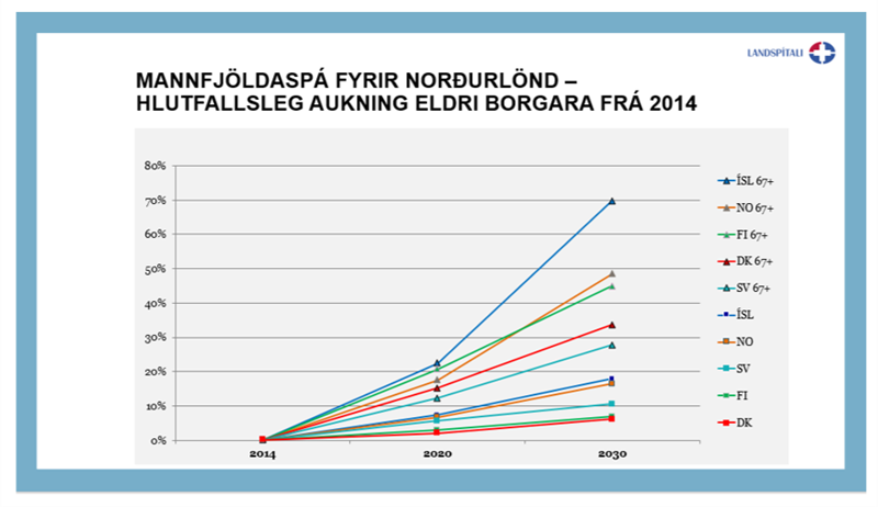 Því hefur verið haldið fram að fjárskortur í rekstri Landspítala og víðtækir hnökrar á flæði til og frá spítalanum sé einhvers konar innanhúss stjórnunarvandi. Eins og tíundað hefur verið hér er það fjarri sanni. Landspítali er vel rekin stofnun sem fer vel með peninga og gerir nákvæmar starfsemisgreiningar sem allir geta kynnt sér á vef spítalans. Starfsemi spítalans kostar miklu minna en sambærilegur rekstur á hinum Norðurlöndunum. Nýjar skipulagsbreytingar lúta sömuleiðis allar að skilvirkari rekstri og betri yfirsýn á starfsemina ásamt vandaðri og öruggari þjónustu við sjúklinga. Staðreynd málsins er sú að taka má undir þau orð alþingismanna og ráðherra að hér á ferð er alvarlegur kerfisvandi sem sparnaður og aðhald innanhúss leysa ekki, þótt það sé hluti af verkefninu. Eins og fjármálaráðherra hefur rætt þá er augljóslega eitthvað brotið í kerfi sem mörg ár steytir á skeri fjárhagslega. Landspítala er ætlað að sinna risavöxnum og kostnaðarsömum verkefnum án fullnægjandi fjármagns. Þessi verkefni eiga flest eftir að aukast og verða dýrari. Slíkt er eðli heilbrigðisþjónustu á 21. öld. Áskoranir sem fylgja sífellt dýrari meðferðum og enn frekar hraðri öldrun þjóðarinnar (sjá meðfylgjandi mynd) eru gríðarlegar og mikilvægt að við horfumst í augu við þær. Um er að ræða kerfisvanda sem stjórnmálamenn og allur almenningur þarf að taka höndum saman um að leysa. Hér þarf samstillt átak þjóðar og þings.