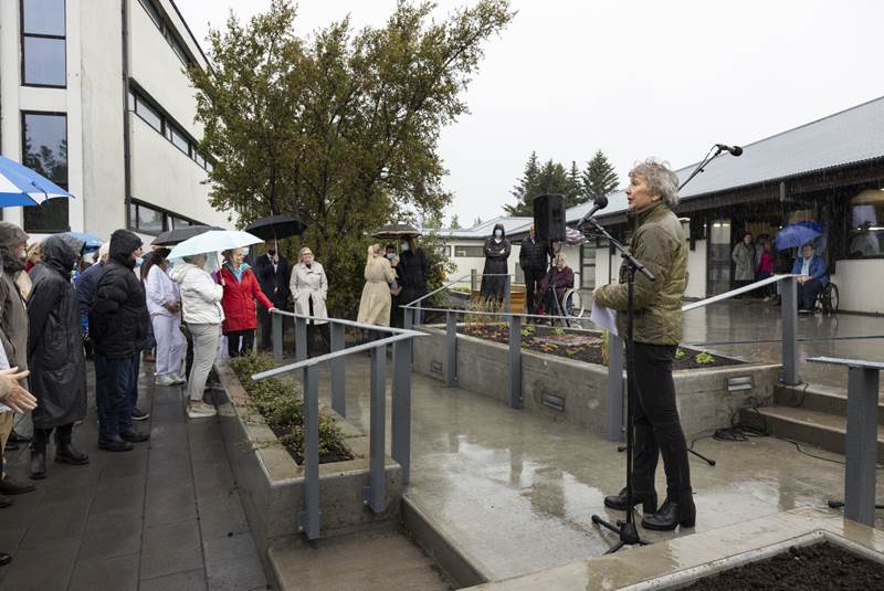 Hollvinasamtök Grensásdeildar afhentu formlega nýjan og endurbættan garð við endurhæfingardeildina að Grensási að viðstöddum heilbrigðisráðherra.