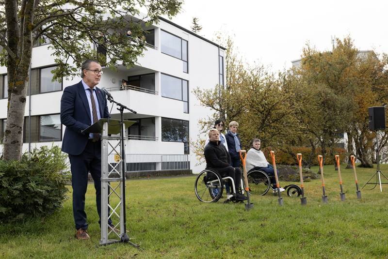 Heilbrigðisráðherra, Willum Þór Þórsson, tók fyrstu skóflustunguna að nýrri viðbyggingu við Grensásdeild. Auk ráðherra tóku skóflustunguna Runólfur Pálsson forstjóri Landspítala, Svava Magnúsdóttir, fulltrúi Hollvina Grensásdeildar, Arnar Helgi Lárusson formaður SEM samtakanna svo og starfsmenn Grensásdeildar, þær Guðbjörg Efemía Magnúsdóttir og Eiríksína Kr. Hafsteinsdóttir.