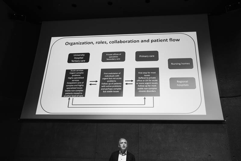 Á málþinginu kom einnig fram að á sama tíma og menntun heilbrigðisstarfsfólks hefur orðið sérhæfðari hafa þarfir sjúklinga orðið almennari. Sífellt fleira fólk þarf á þverfaglegri þjónustu að halda til lengri tíma og það ætti að vera markmiðið að efla heilbrigðiskerfið til að takast á við það. Í íslensku samhengi er mikilvægt að treysta heilsugæsluna enn frekar og tryggja yfirsýn og ábyrgð stjórnvalda á því hvaða þjónusta er keypt af sérgreinalæknum og öðrum einkaaðilum.